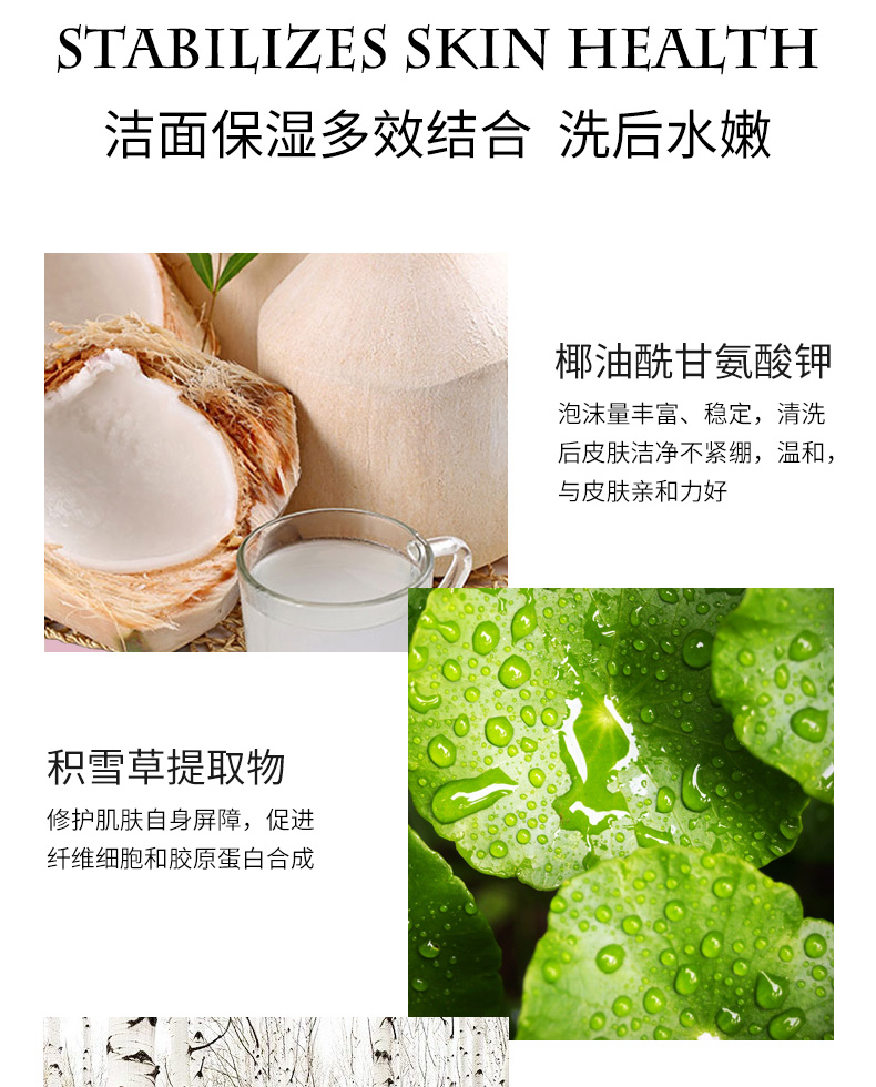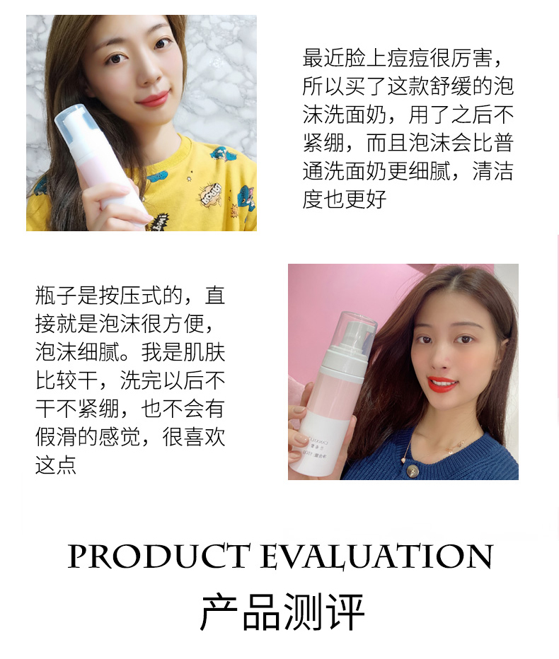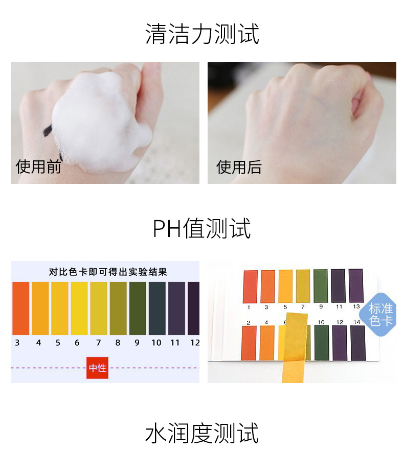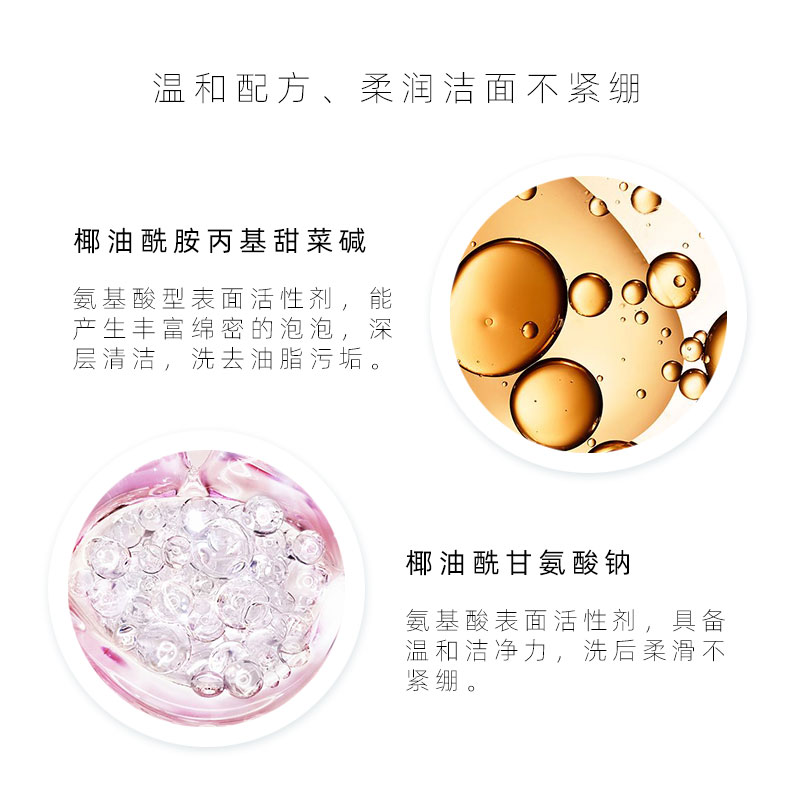 丰富绵密的泡沫,手感细腻而绵柔,温和不刺激、轻松带走面部积压的油垢、污渍和残妆,添加多种补水保湿因子,具有深层清洁及补水保湿二合一功效、深层补水同时调节肌肤水油平衡,洗后净爽不干燥。